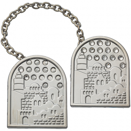 Elegant tallit prayer shawl clips featuring a classic Jerusalem design in nickel-plated finish. Helps keep the tallit securely in place during prayer while adding a meaningful decorative touch. |
